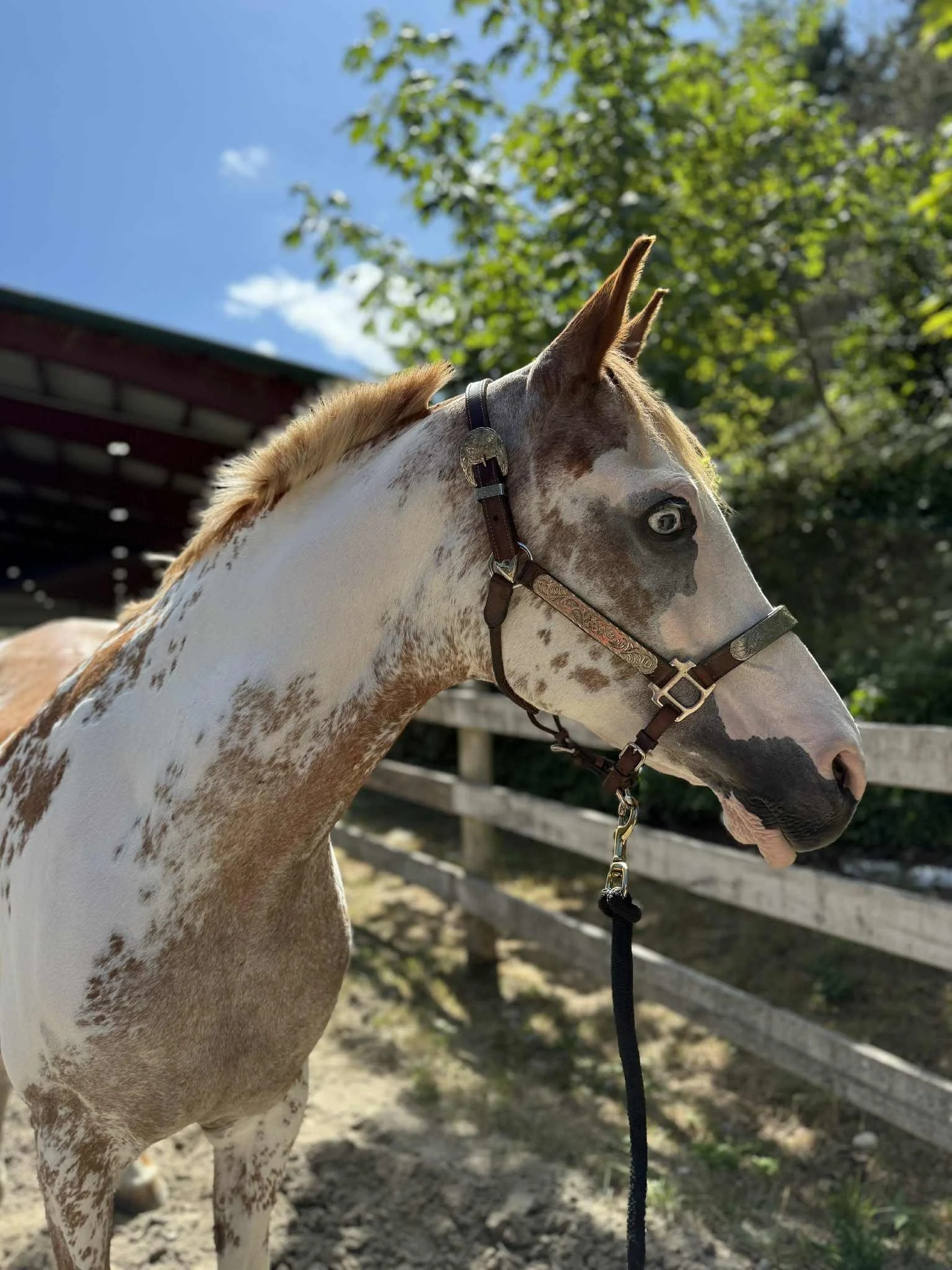 Harlin is our 22 year old Half Arabian mare and she’s the main squeeze in the lesson program. She has the energy of an energizer bunny and loves to work. She’s a little quirky here and there, but completely safe for all levels of riders.